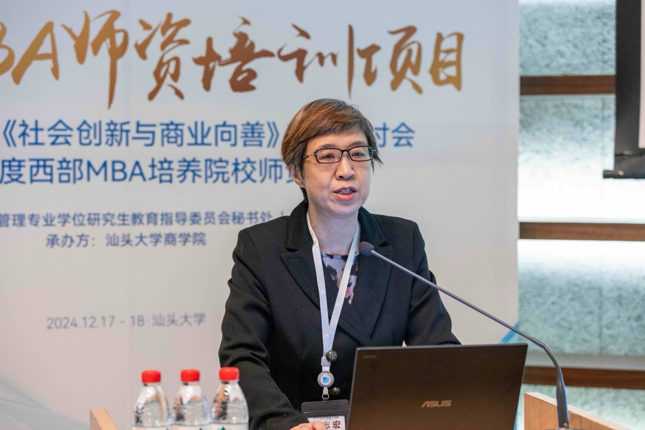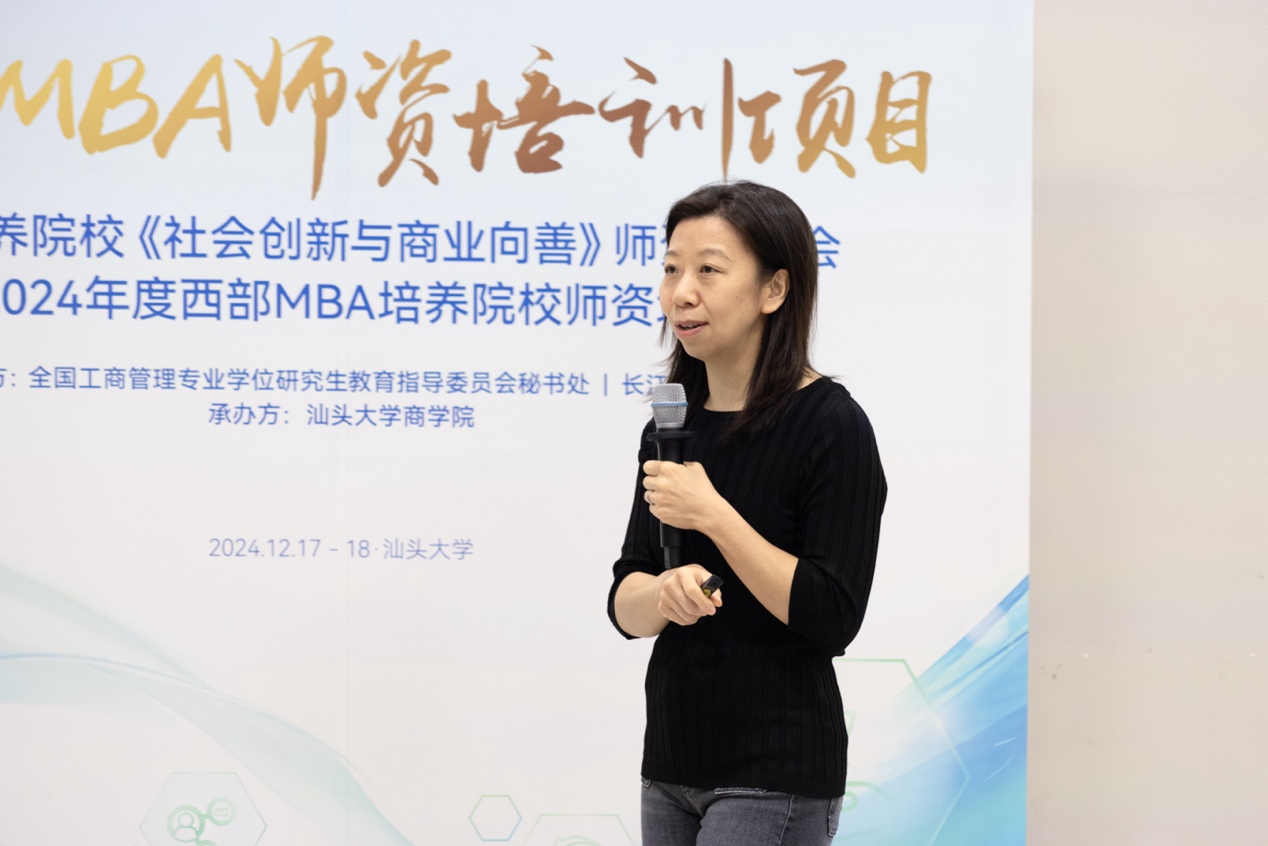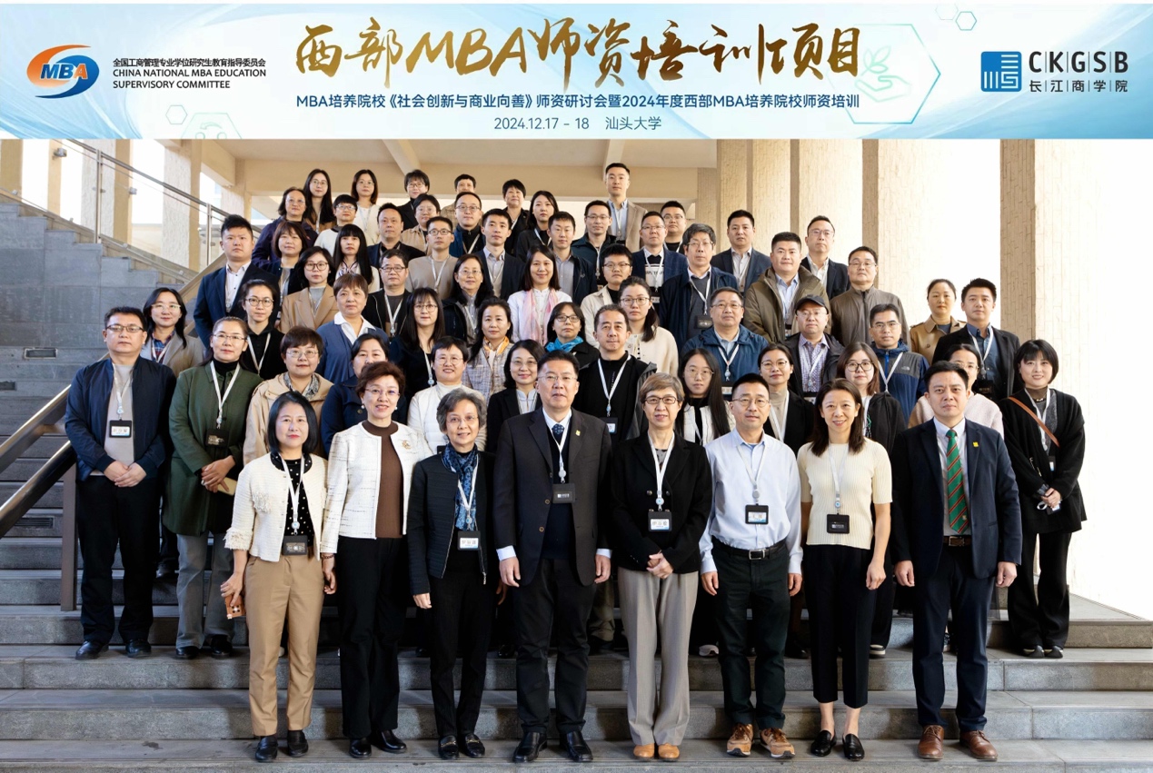 2024年12月17日至18日,由全国工商管理专业学位研究生教育指导委员会(以下简称“全国MBA教指委”)秘书处、长江商学院主办、汕头大学商学院承办的第六期“西部MBA师资培训”公益活动在汕头大学成功举办。本期培训以“社会创新与商业向善”为主题,授课嘉宾为长江商学院市场营销学教授、ESG及社会创新中心主任朱睿教授。全国MBA教指委副主任委员、中国人民大学原副校长伊志宏教授,汕头大学党委副书记、校长郝志峰教授、李嘉诚基金会驻汕头大学医学院顾问罗敏洁博士、长江商学院学术高级副院长、杰出院长讲席教授王能出席本次培训开班仪式,来自全国四十余所MBA培养院校的60名教师参加此次课程。