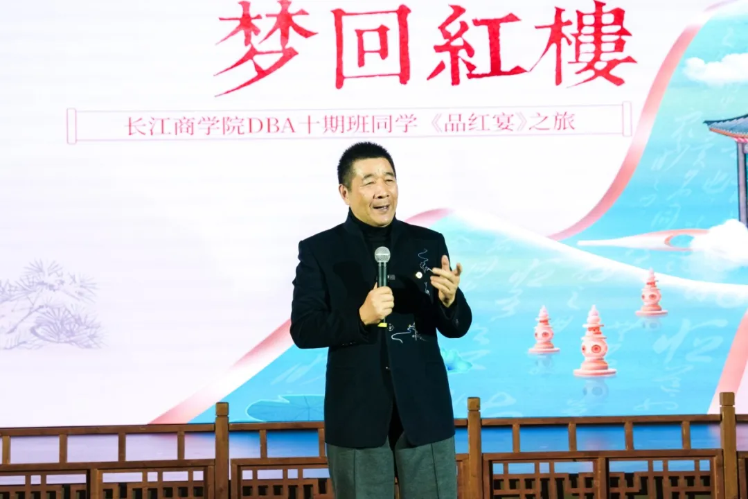 三天课程中,来自长江DBA各期班级的校友同聚一堂,教授们带来全球视野的前沿洞察,企业家导师分享实战经验,遥望科技与珀莱雅等代表性企业的参访,则让品牌战略从课堂走进现实。而夜晚的“品红宴”“又见宋韵”晚宴等课后活动,更是别开生面的文化体验。从缂丝菜单到AI丝绸投影,从红楼菜品到古典乐章,每一个环节都承载着对传统文化的致敬,也唤醒了同学之间更深层次的情感共鸣。