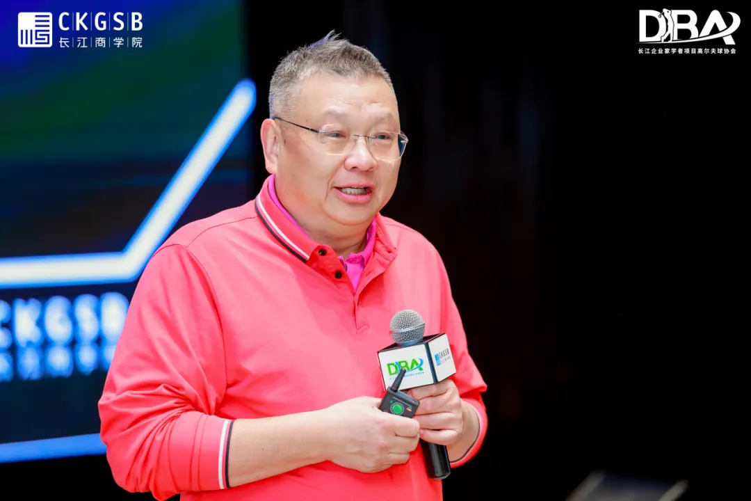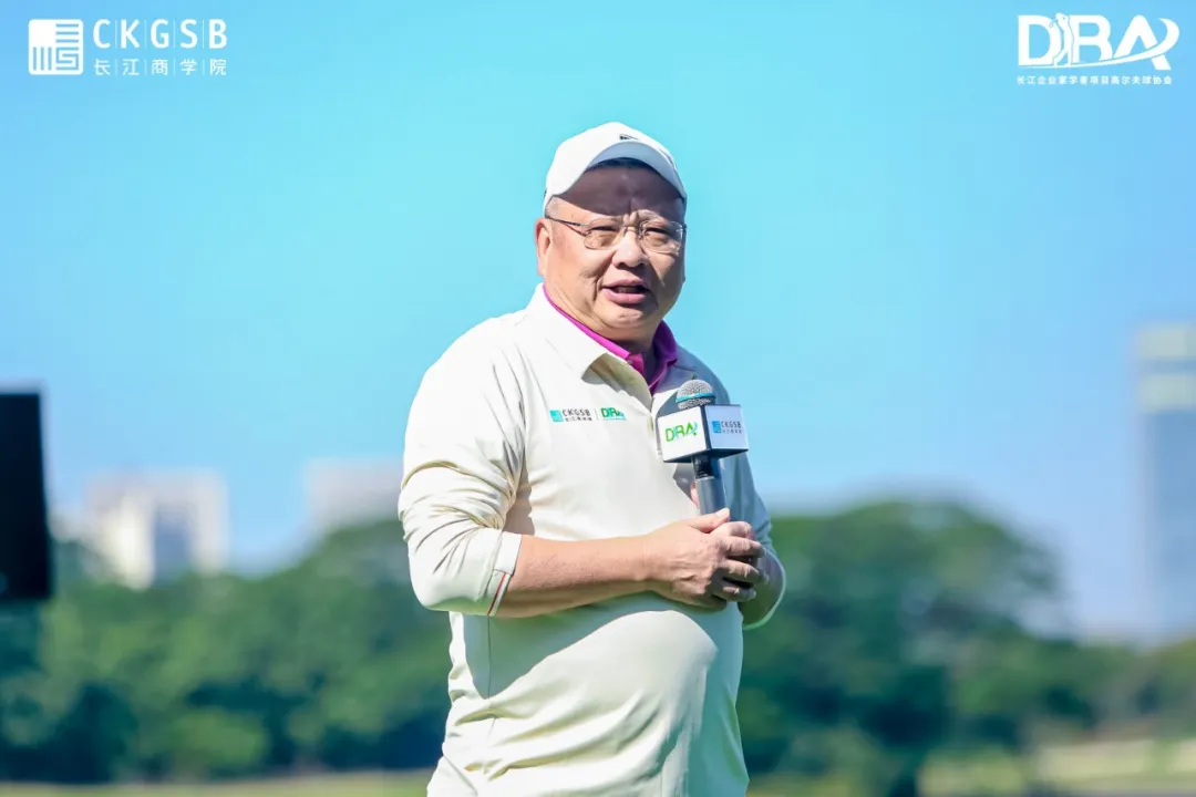 长江商学院创办院长、中国商业管理及全球化杰出院长讲席教授项兵,长江商学院院长、金融学教授、杰出院长讲席教授李海涛分别致辞。DBA十一期班同学、DBA高球队秘书长李炫直对本次球赛规则进行详细说明。