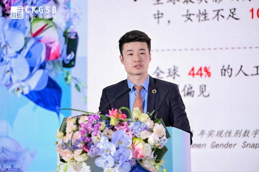 在题为《女性·韧性²:向上的乘数》的主旨演讲中, 长江商学院EMBA项目副院长、组织行为学副教授、领导力与行为心理研究中心主任、隽永女性领导力项目学术主任张晓萌教授分享了《创新她时代:女性引领中国数字未来》报告中关于“人工智能与职场心理健康”的最新研究成果。