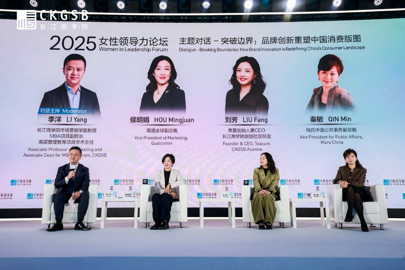 长江商学院市场营销学副教授、MBA项目副院长、高层管理教育项目学术主任李洋教授主持了题为“突破边界:品牌创新重塑中国消费版图”的主题对话。三位嘉宾聚焦消费品牌如何在快速变化的中国市场突出重围、引领新潮,分享了各自的经验与洞见。