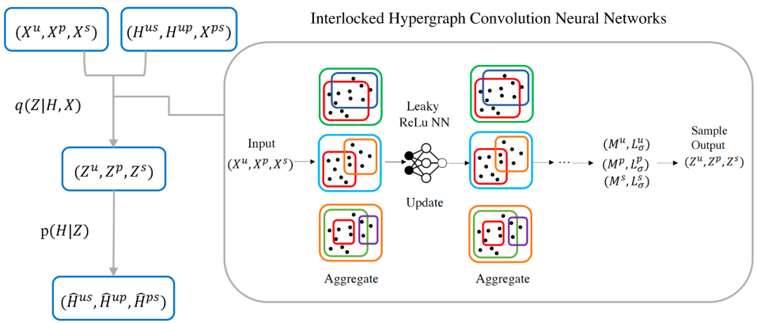 超图作为图结构的广义形式,允许一条边(称为超边)连接任意数量的顶点,从而能够刻画多对象之间的高阶复杂关系。论文的核心思想是使用“互锁超图(interlocked hypergraphs)”来表示三类关系: